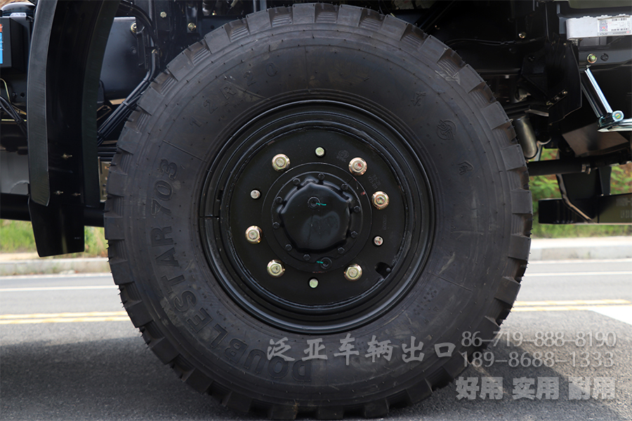 采用玉柴YC6Mk340-33发动机,手动12档,分时六驱,带高低两档。钢板弹簧9/10片。油箱容积300L。