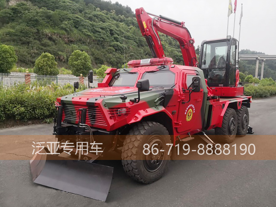 如何说它是一辆能推能挖呢?你会发现它在驾驶室前端安置了道路清障板,在后轮上是采用Kuboto久保田挖掘机装配到一起,让它成功的变成了一车多能的猛士抢险破障车。kutobo的挖掘传动方式液压传动,最大挖掘深度是3630mm。挖掘机的长、宽、高分别是5500mm、2000mm、2540mm。其单排驾驶室设计为后方的上装设备下充足的布置空间,在驾驶室选材上,依旧按照安全与责任的使命感,采用全金属包裹,让它在恶劣环境下实用性更强。