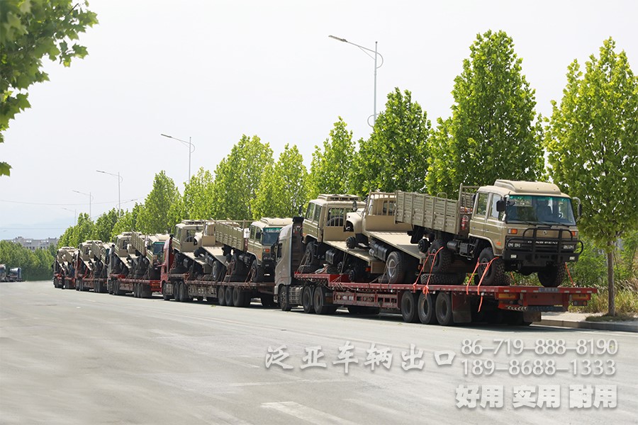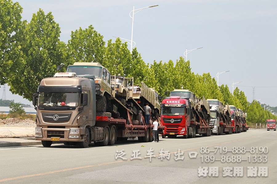 近日,客户订购的一批越野卡车到了激动人心的交付时刻,拖挂车辆严正以待,披星戴月,承载一批优质卡车奔赴远方