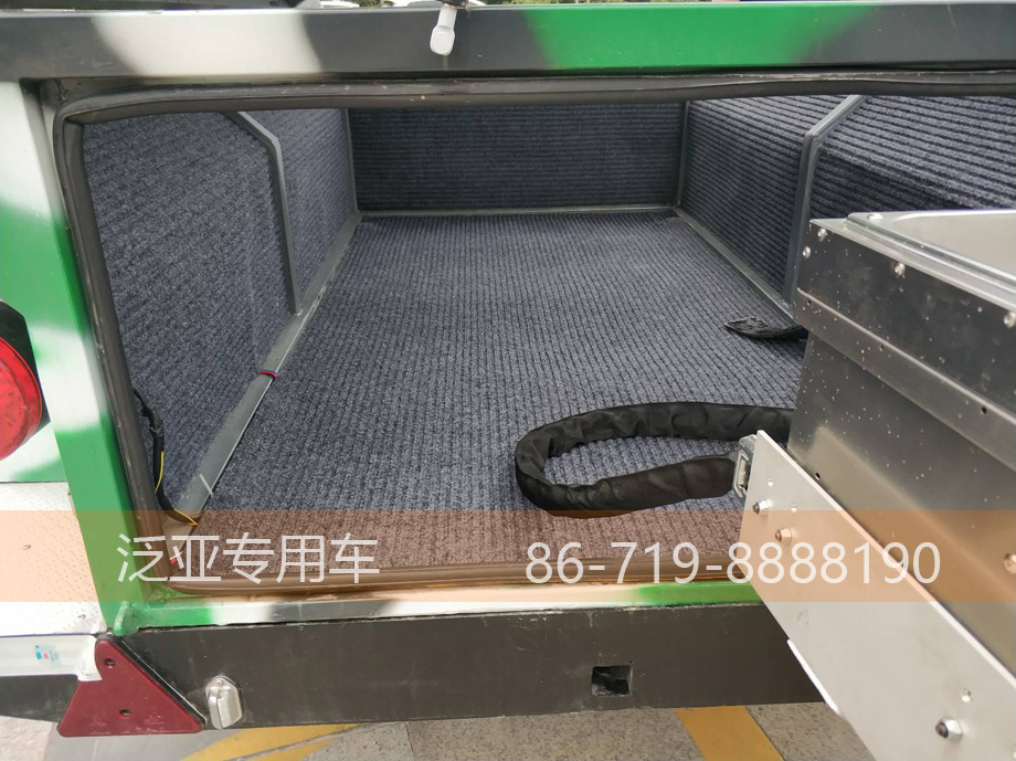 车前装有一个50L不锈钢水箱,采用手动水泵,用水方便,前储物箱可以用来存放各类杂物及液化气坛。