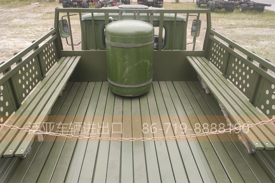 车上装有冷启动系统、副油箱、机油桶、水桶、篷布篷杆、工具箱等军用附加装置,可在-41℃环境温度下能顺利启动
