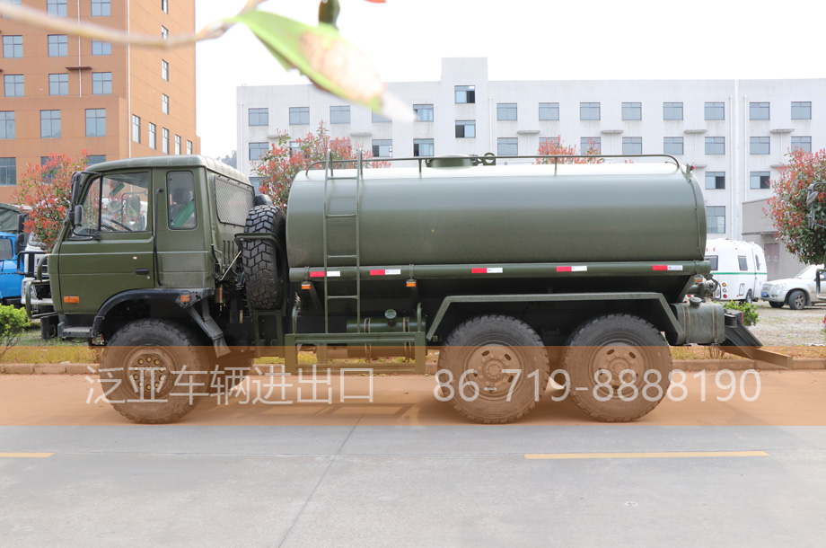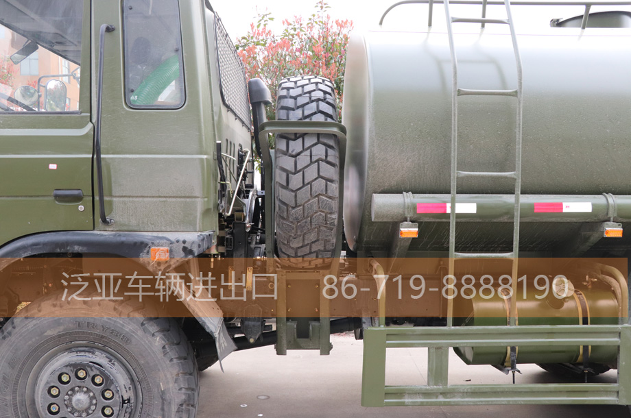 上装配置 后无平台,自流阀及消防接头各一个,水管与罐体通长2根。罐内玻璃钢内涂,左后方自吸自排。罐体厚4mm