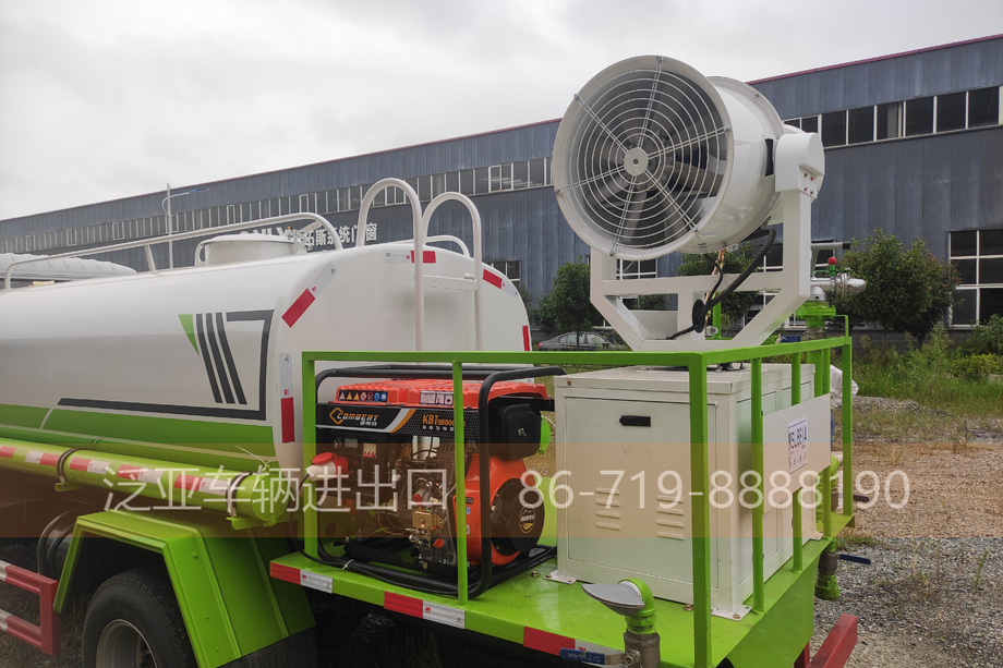 上装 可后冲,后洒,侧喷,高炮,带洒水平台,吸水管2根,带有音乐喇叭和消防接口,尾部平台带喷雾机