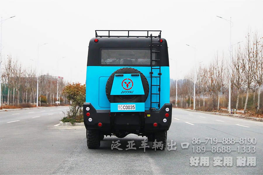 车外设有行李舱、行李架、防护栏、备胎架、水箱