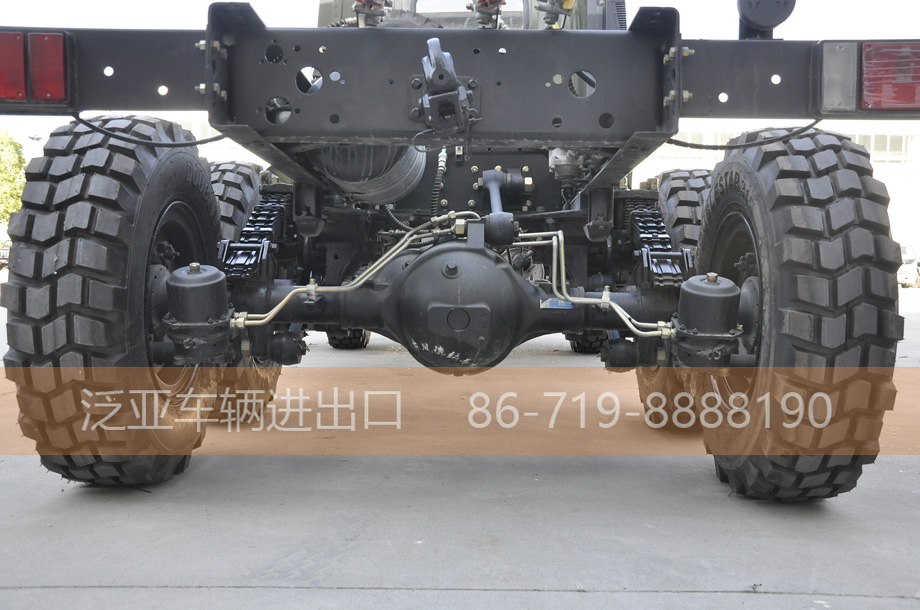 后悬架:平衡式,钢板弹簧,两端均为滑板式,带有六根推力杆