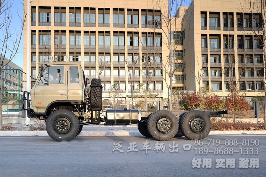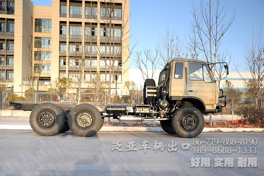 东风六驱舵灰色越野卡车底盘_东风6x6越野专用车底盘、东风排半驾驶室越野载货车底盘