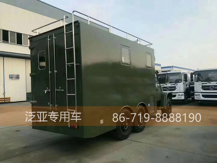 上装参数 上装为4.5米炊事车货箱(尾部双开门)。