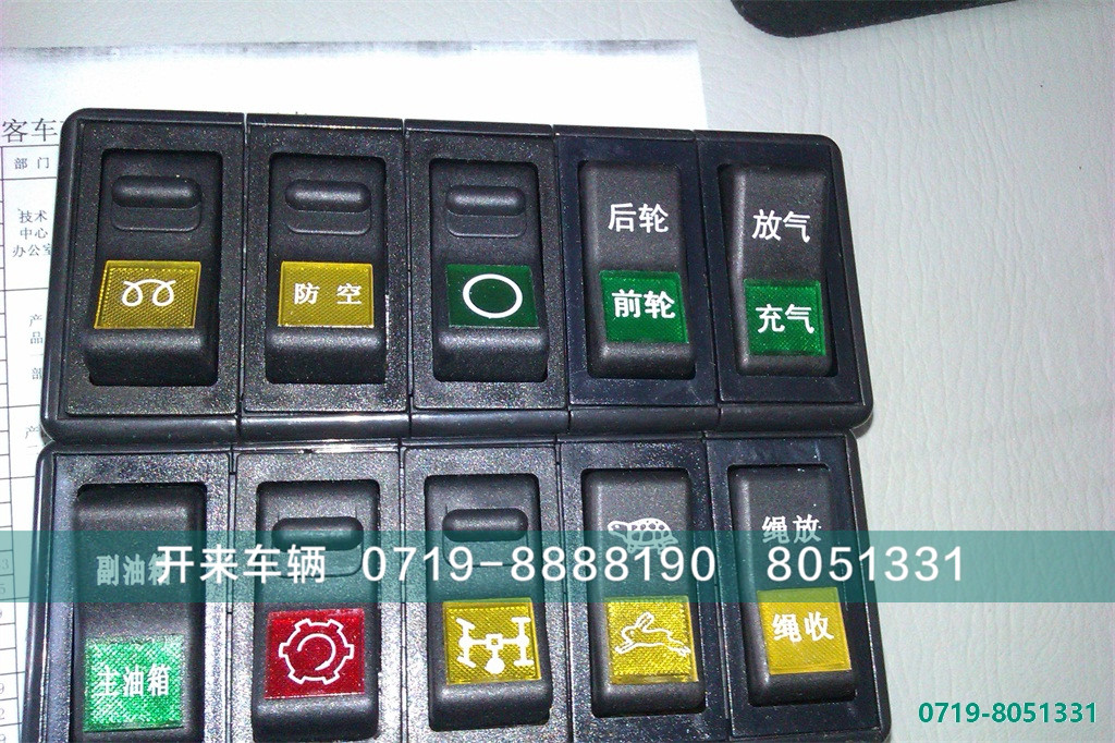 g) 开关:电源总开关、点火开关、组合开关、八组合翘板开关。